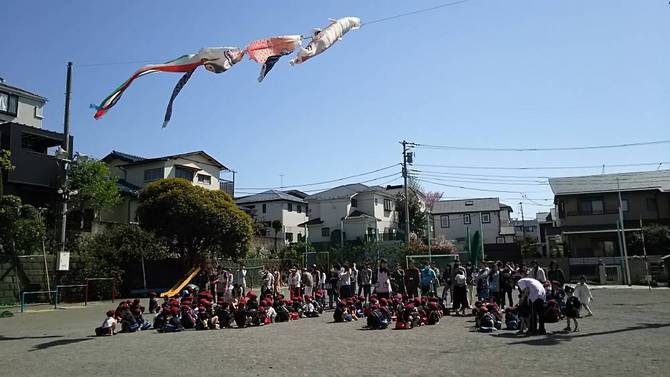 鯉のぼりと降園