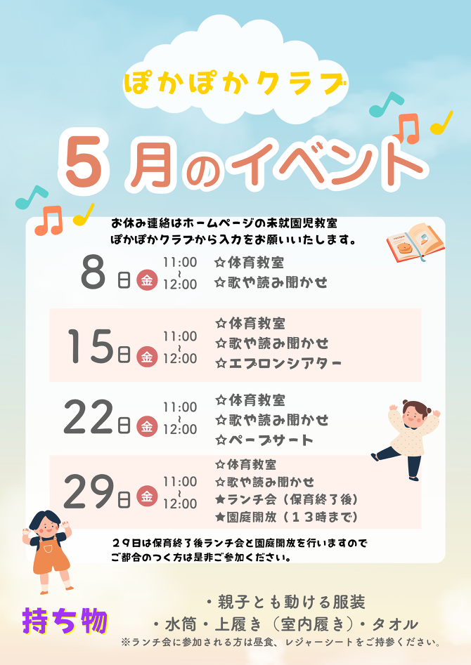 ・園庭解放やランチ会(月末)